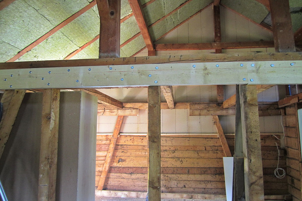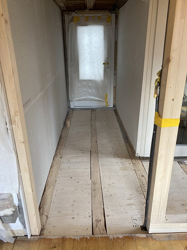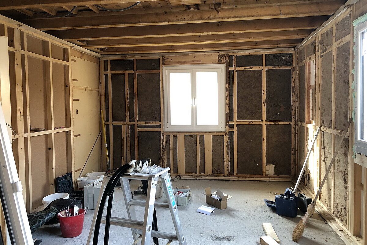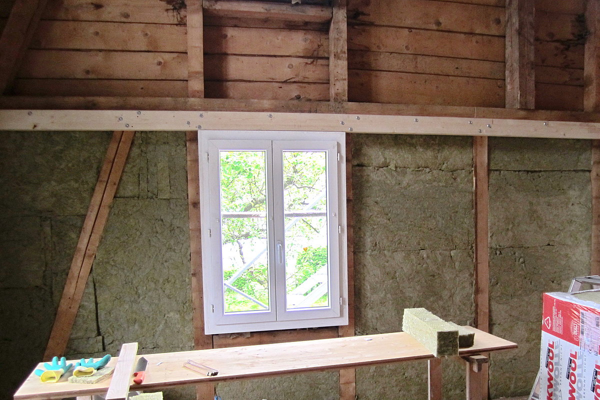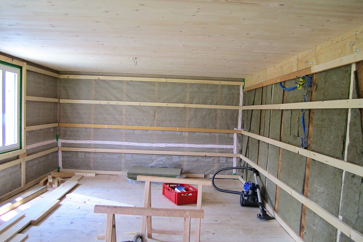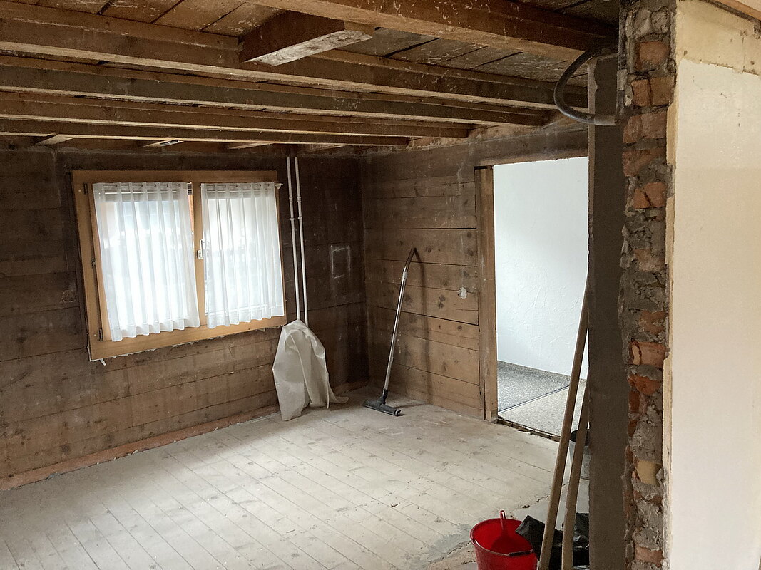 - kompletter Innenausbau, Wände, Decke, Fenster, Dachfenster, Türen, Parkett