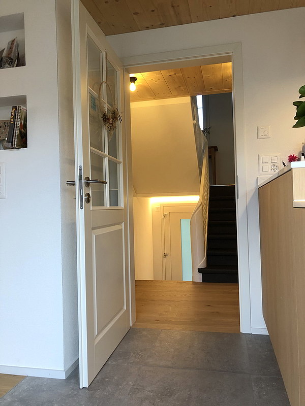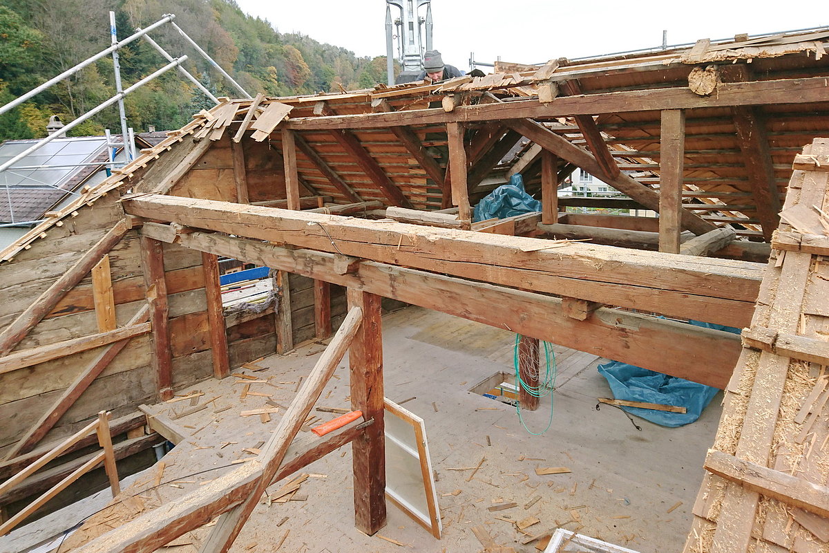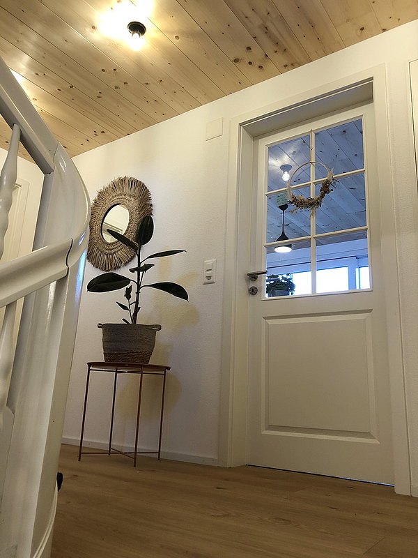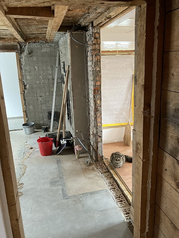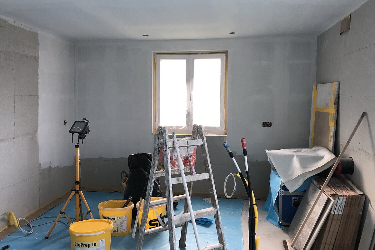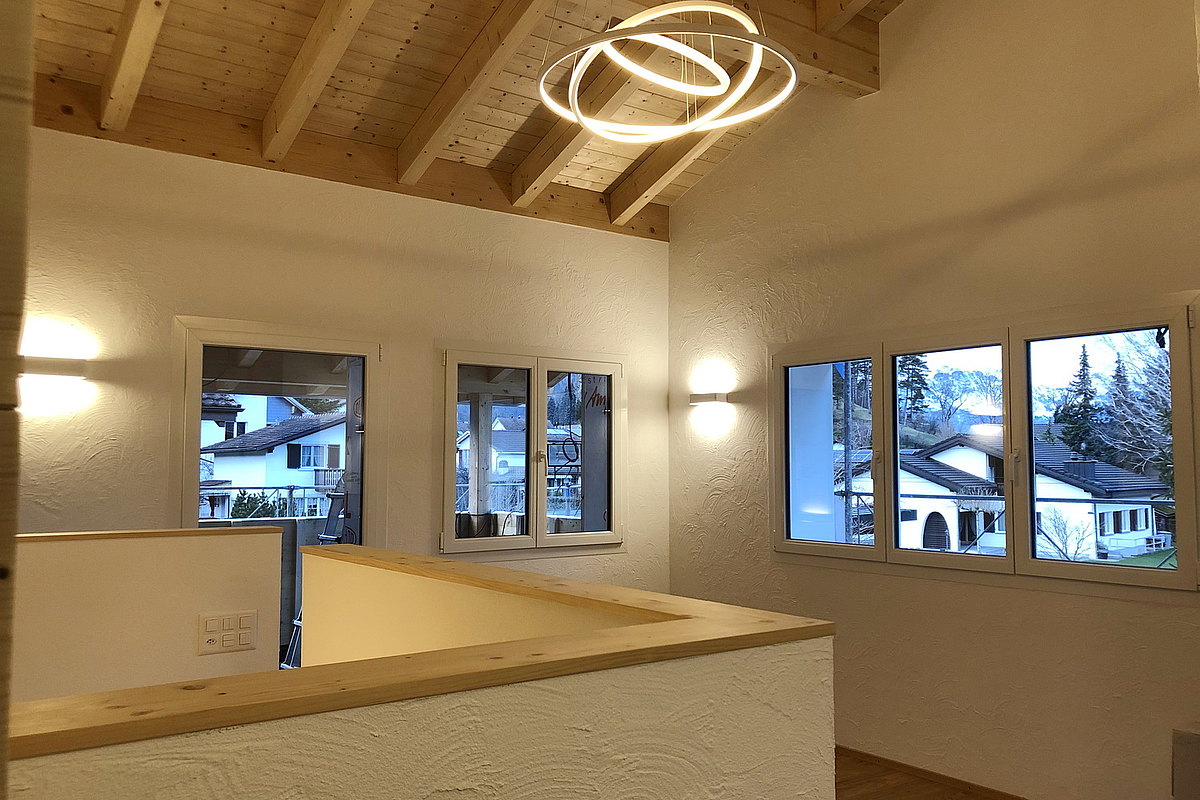 - kompletter Innenausbau, Wände, Decke, Fenster, Dachfenster, Türen, Parkett